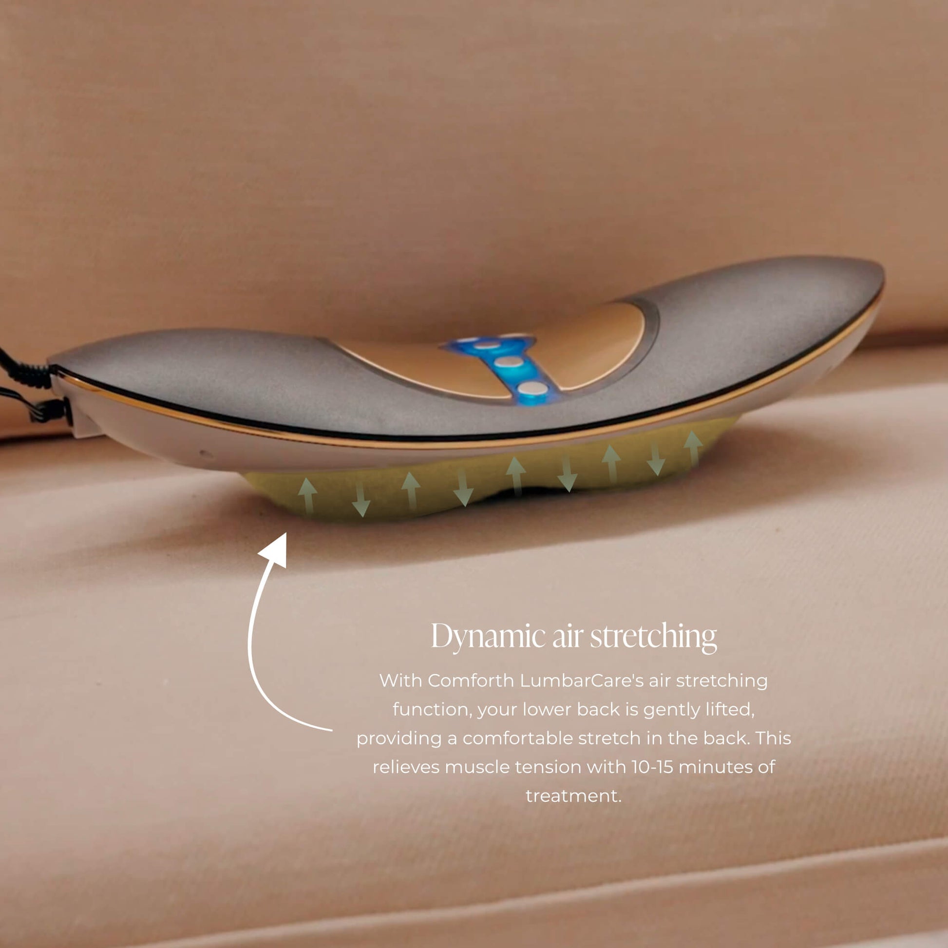 Nuestro nuevo e innovador Comforth LumbarCare es la solución para usted que desea aliviar el dolor de espalda y lograr bienestar en casa. Disfrute de un tratamiento relajante después de un largo día y sienta la diferencia con hasta 5 tecnologías efectivas.