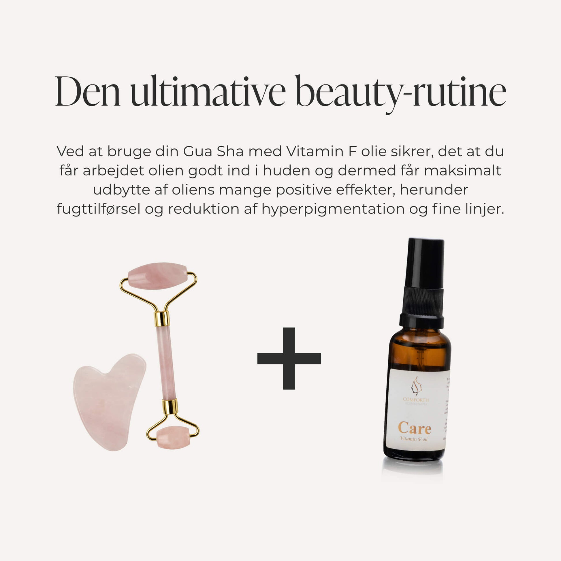 Al utilizar Gua Sha, también tiene la ventaja de que ayuda a que productos como cremas y aceites penetren mejor y profundamente en la piel. Por eso es mejor utilizar gua sha junto con un aceite de vitamina F. Esto garantiza que el aceite penetre bien en la piel y así obtener el máximo beneficio de los numerosos efectos positivos del aceite, incluido el suministro de humedad y la reducción de la hiperpigmentación y las líneas finas.